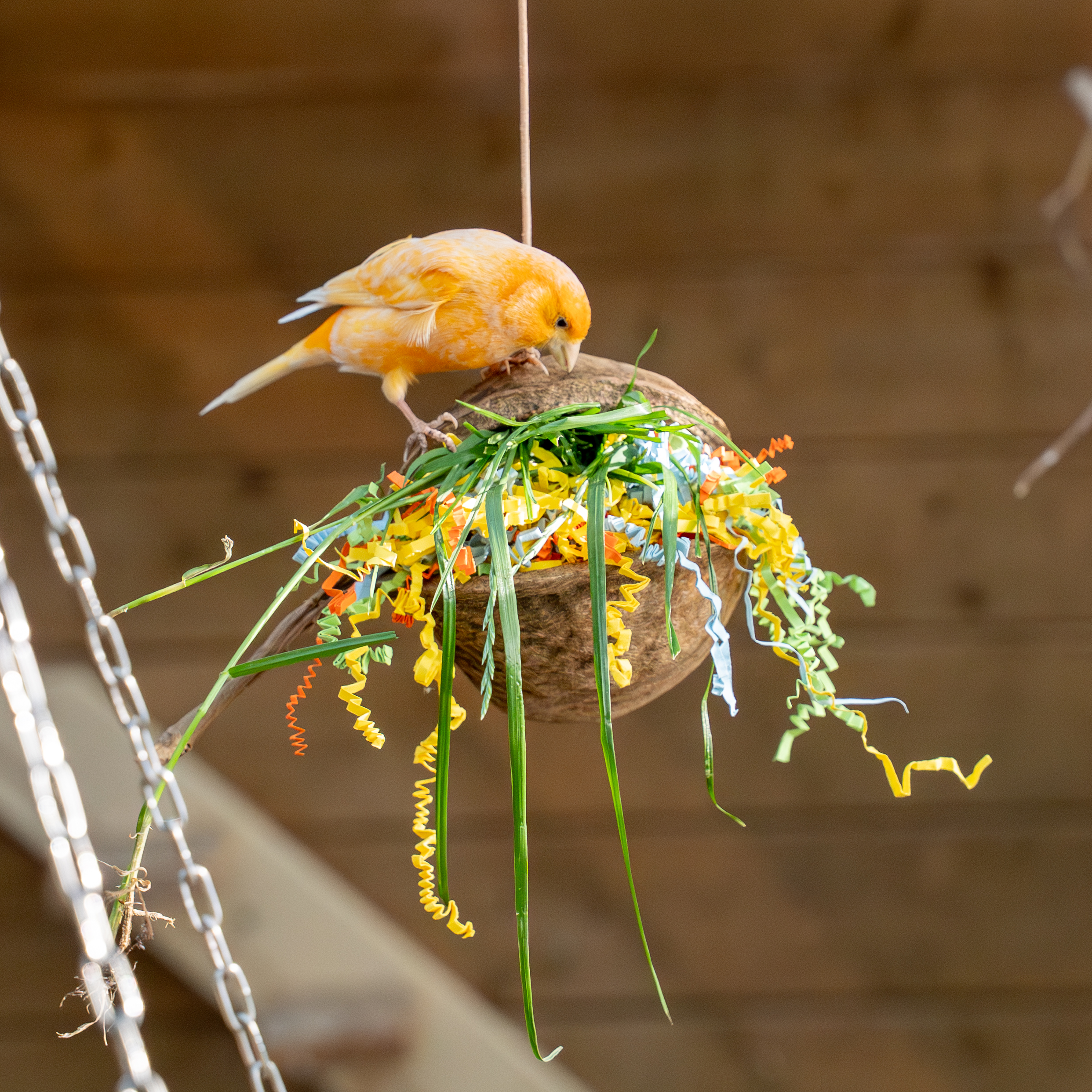 Unsere Wellis lieben die Kokosnuss. Insbesondere zum Schreddern ein toller Zeitvertreib. Und auch als Schaukel wird sie gerne genutzt.
