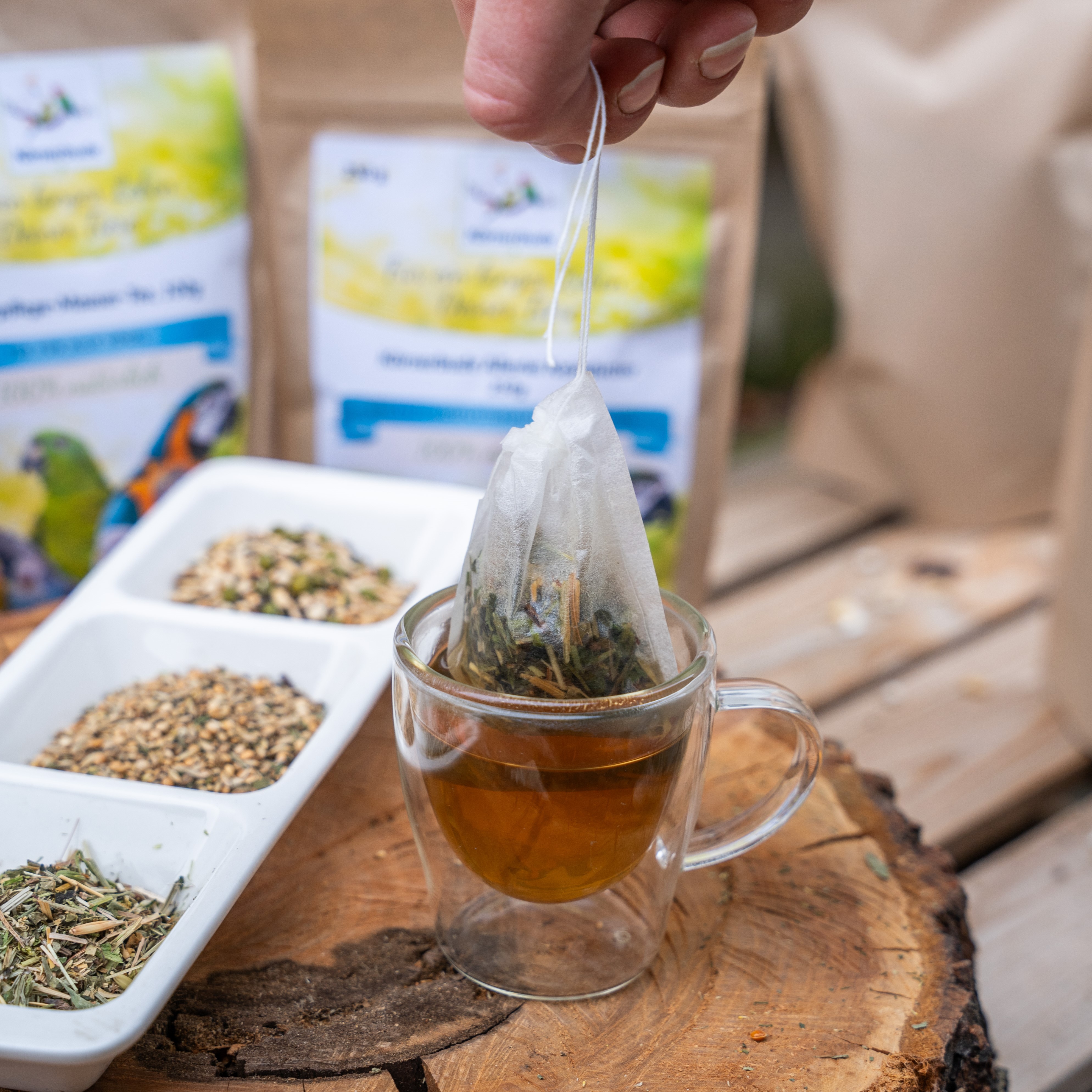 - Mauser-Tee: Kieselsäure fördert starkes Gefieder, Brennnessel beruhigt Hautirritationen