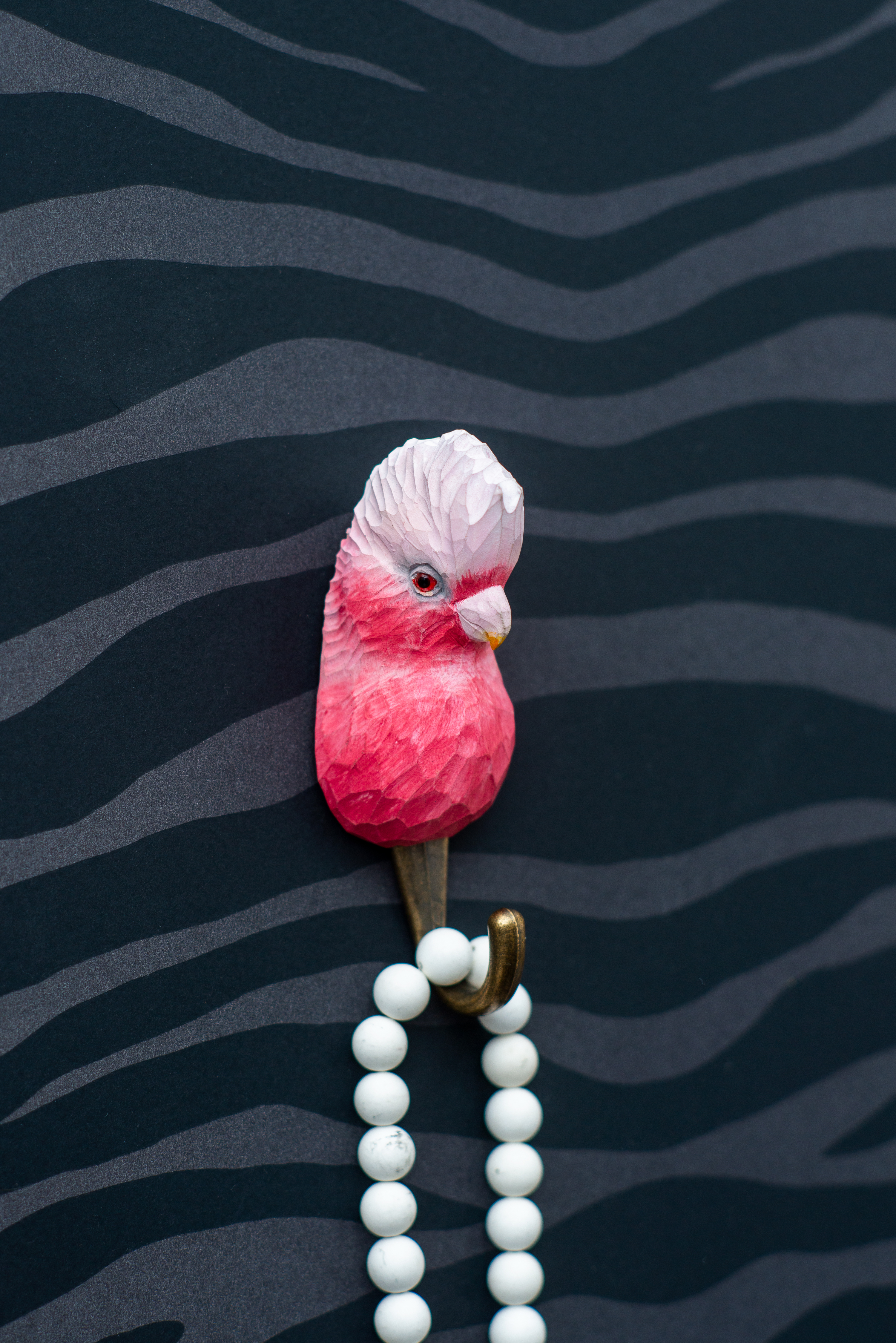 Entdecken Sie den Charme des Australischen Rosakakadus mit unseren dekorativen handgeschnitzten Haken
