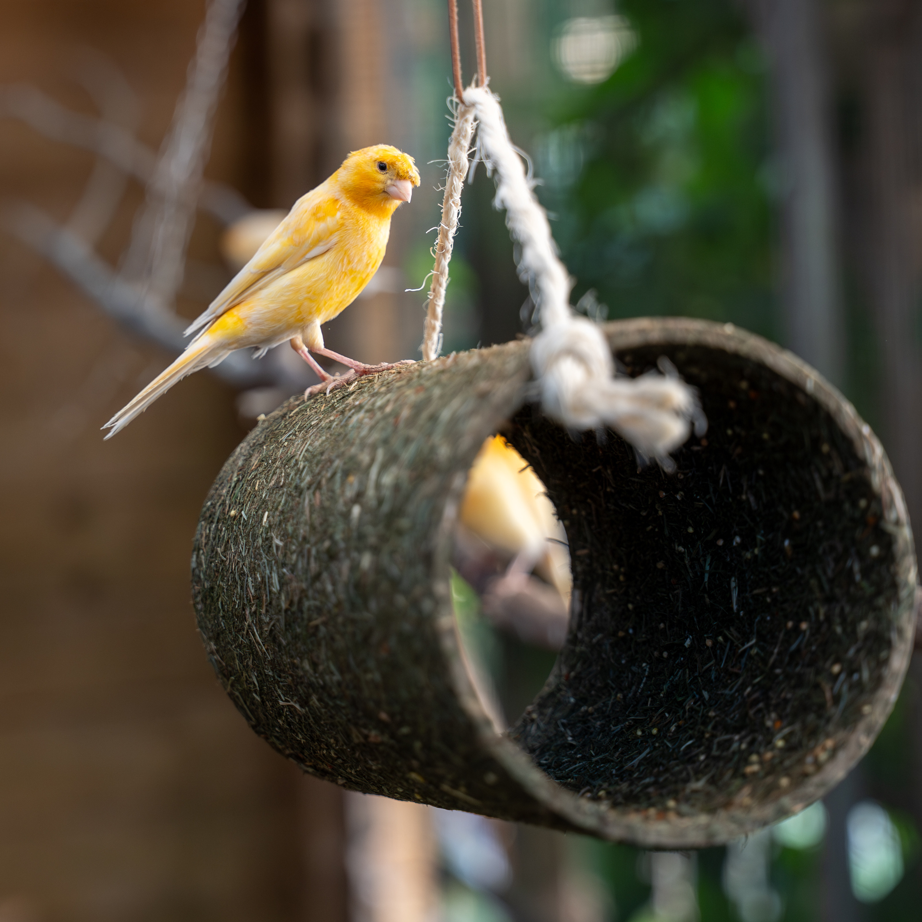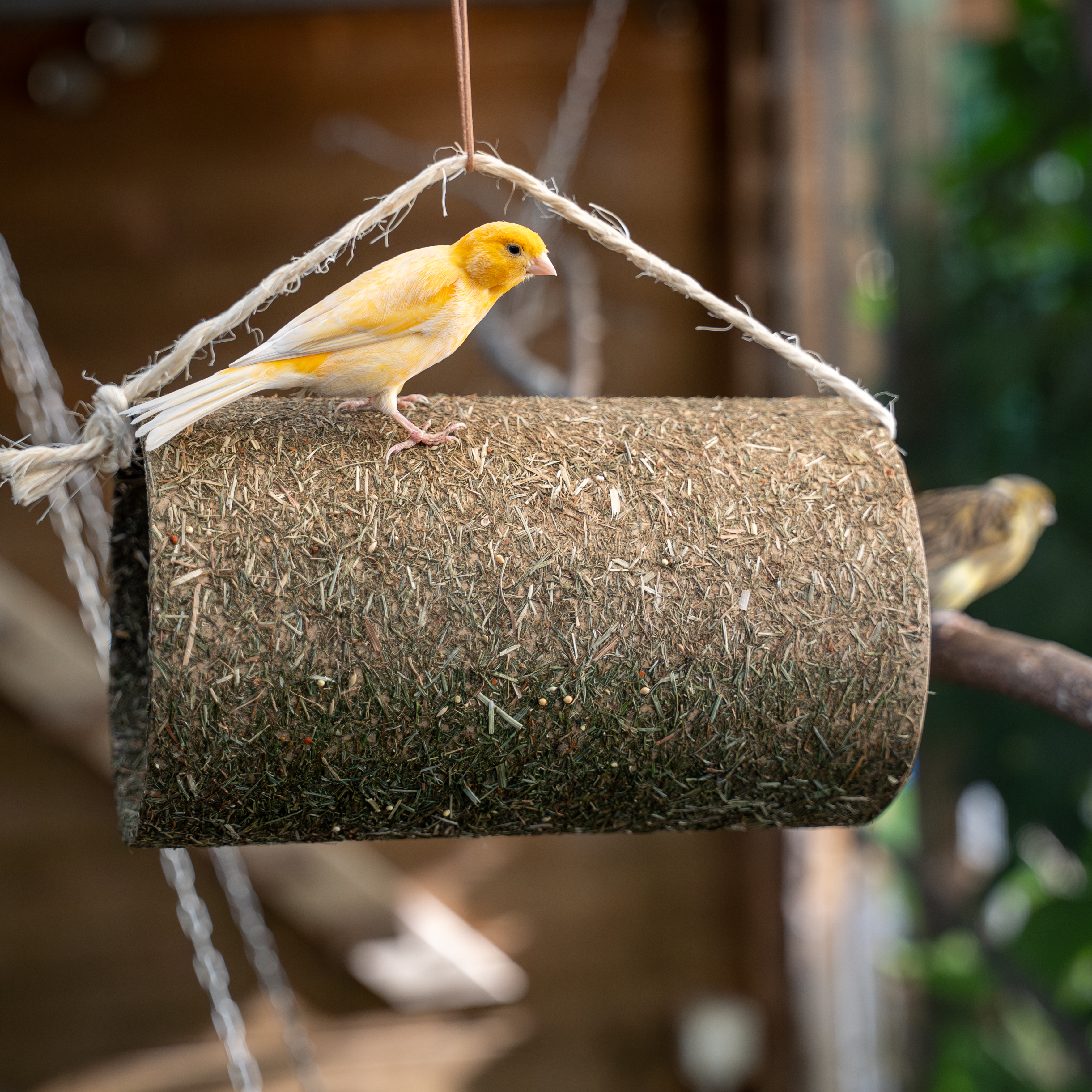 Dieser Tunnel aus 100% Naturmaterial ist umhüllt mit duftenden Kräutern und verschiedenen Hirsekörnern. Aufgehängt bietet er den Vögeln Beschäftigung und Pickvergnügen in Einem.