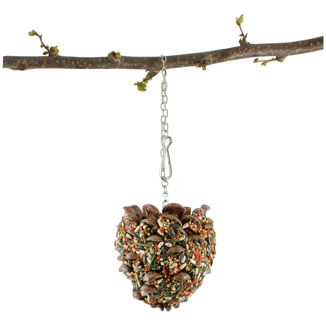 ist ein natürlicher Pinienzapfen, gefüllt mit leckeren Saaten und Gemüse. Langzeitbeschäftigung und Spielspaß inklusive.