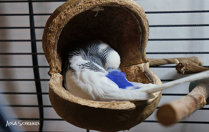Meine Wellensittich-Henne liebt diese Schaukel. Es hat nicht lange gedauert, bis sie erstmal "renoviert" hat und das Innere stundenlang zerschredderte. Mittlerweile sitzt sie auch so sehr gerne drin und drauf und versucht sich darin zu verstecken :). Ich werde wohl irgendwann mal eine neue nachkaufen, damit es wieder ordentlich was zu Schreddern gibt.