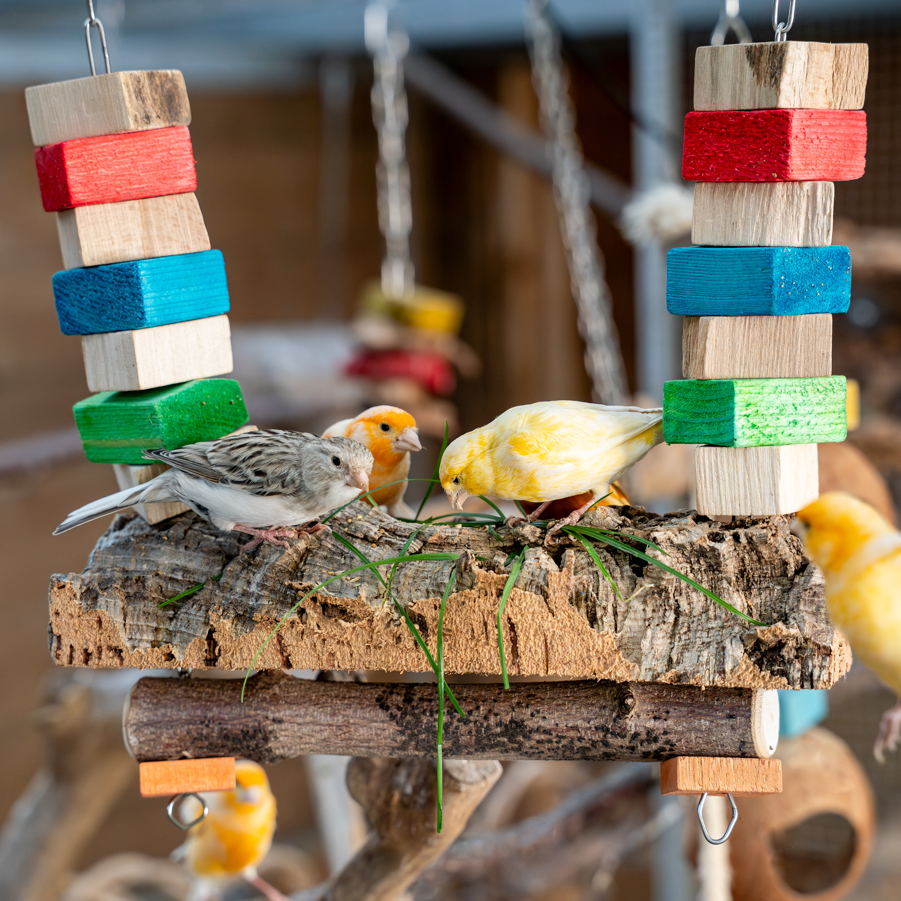 Mit Kork kann man bei meinen Wellensittichen nichts falsch machen. Sie lieben die Schaukel und sind fleißig am Knabbern.