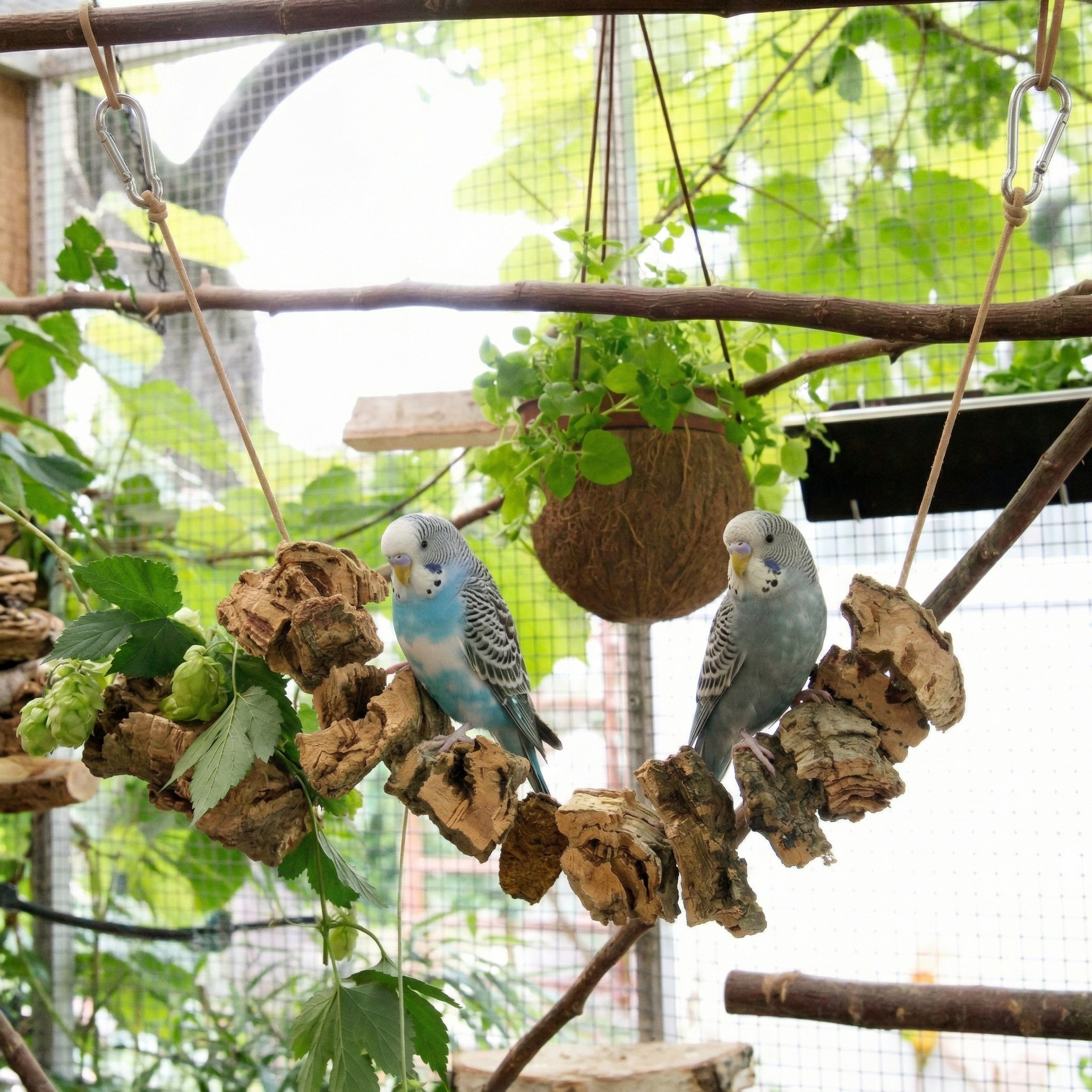 - Stimulation & Beschäftigung: Die Kombination aus Kork und der Möglichkeit zum Klettern und Schaukeln fördert die geistige und körperliche Aktivität Deiner Vögel.