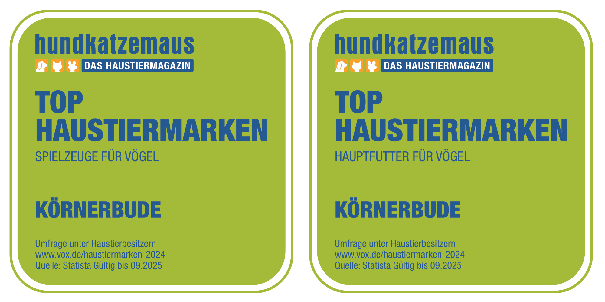 Euer Feedback zählt! Die Auszeichnung basiert auf dem Feedback tausender Tierbesitzer in Deutschland. Es macht uns unglaublich stolz, dass Ihr unsere Arbeit, unser Herzblut und unsere Qualität anerkennt. Die Körnerbude steht nicht nur für Futter, sondern für einen Herzenswunsch: das Wohl der Vögel stets an erste Stelle zu setzen.