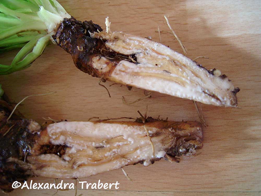 Auch die langen, rübenartigen Wurzeln des Löwenzahns können den Sittichen und Papageien in frischem Zustand angeboten werden.Sie sind fleischig und außen dunkelbraun bis schwarz und werden ab September bis in den Winter hinein ausgegraben.Je später man sie erntet, umso weniger Bitterstoffe enthalten sie; im Winter schmecken sie sogar eher süßlich. Ausgegraben werden sie am besten mit einem speziellen Löwenzahnstecher, der die Arbeit sehr vereinfacht.Man kann die Wurzeln im Ganzen reichen oder halbiert, gerieben oder kleingeschnitten, je nach den Vorlieben der Vögel.