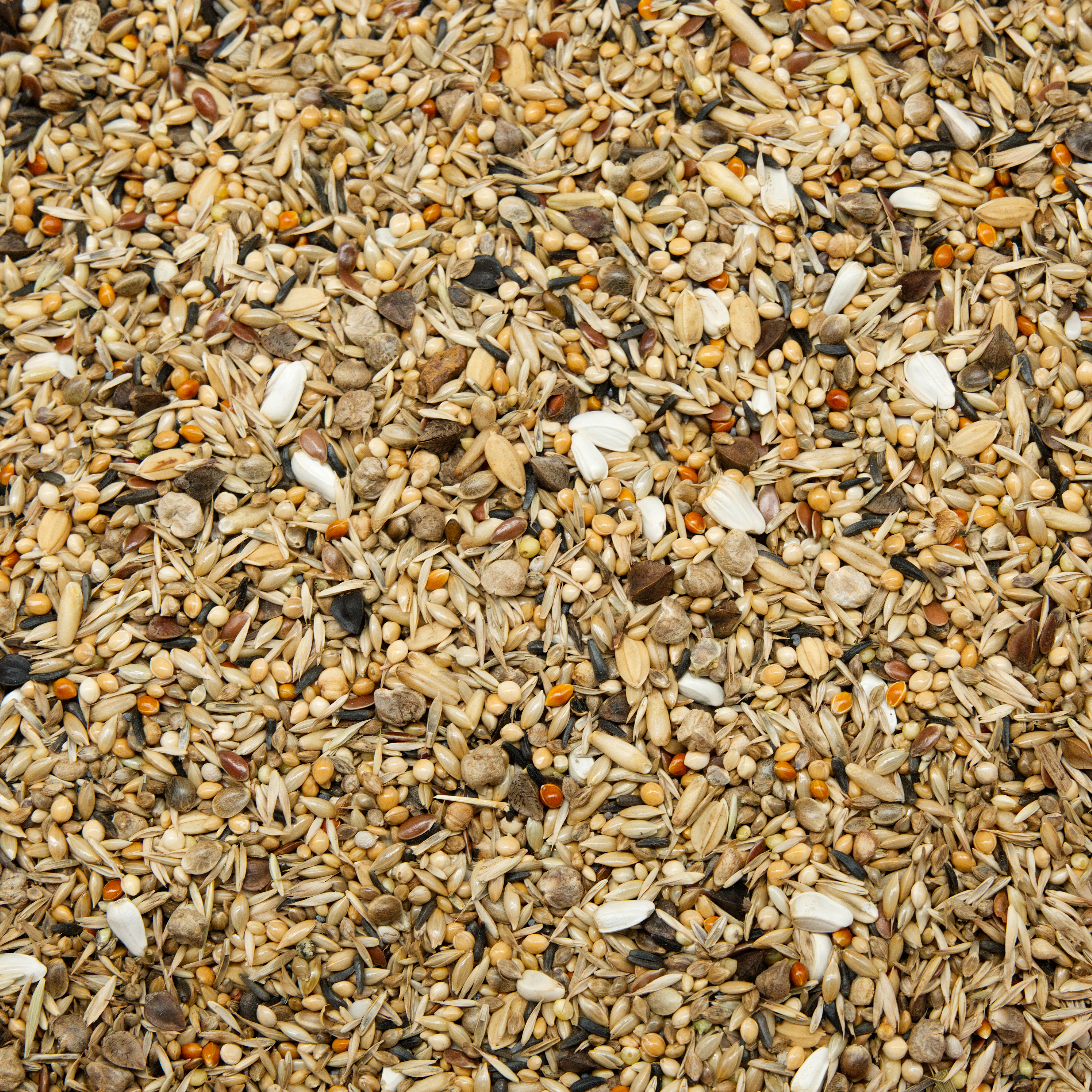 - Hoher Anteil an Grassamen und geringer Anteil an ölhaltigen Saaten beugt Fettleibigkeit und Leberproblemen vor.