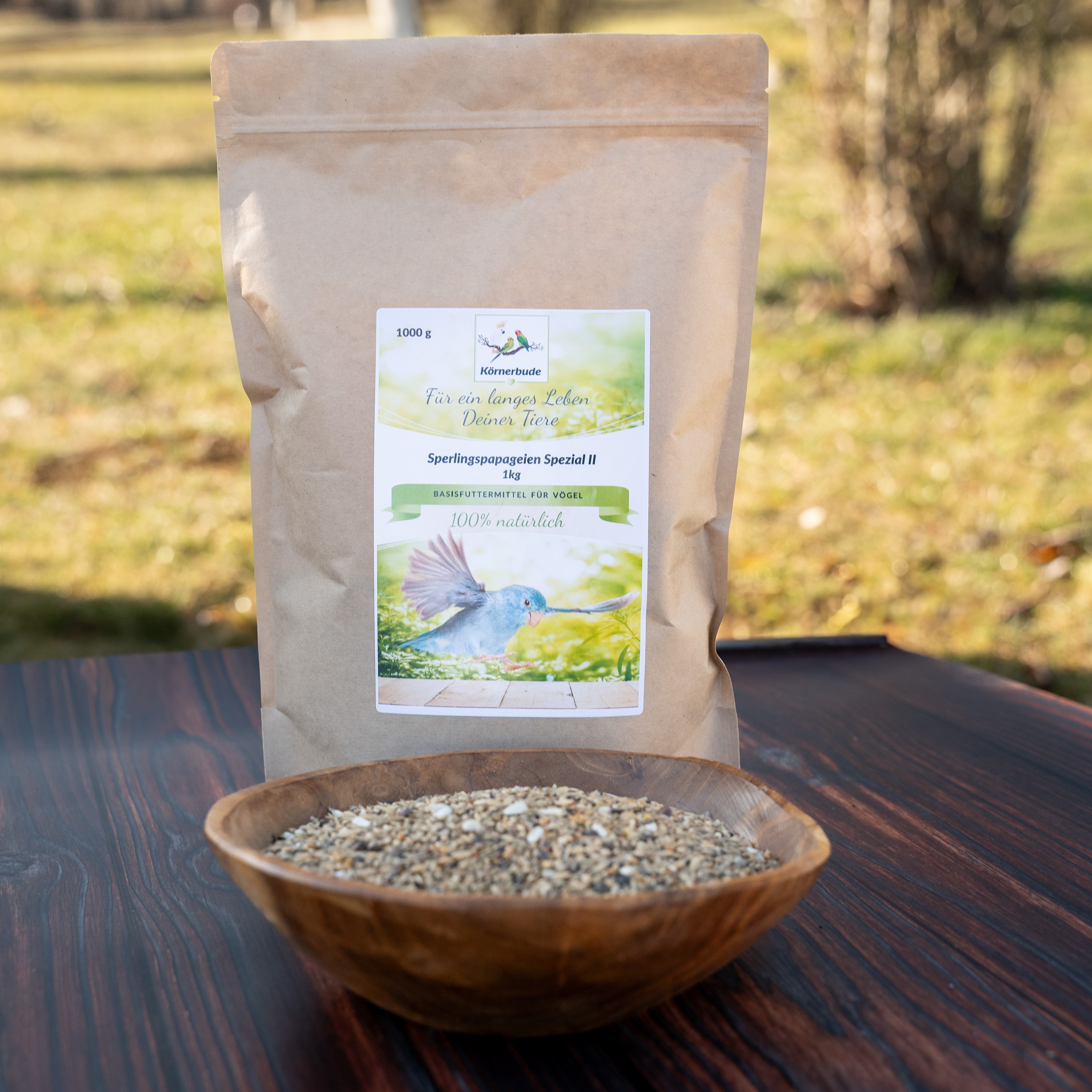 Die Saaten in der Mischung wurden speziell auf die Bedürfnisse von Sperlingspapageien abgestimmt, um Leberprobleme zu vermeiden. So können die Vögel ihre tägliche Ration genießen, ohne sich Sorgen um ihre Gesundheit machen zu müssen. Sperlingspapageien Spezial II ist eine sehr ausgewogene Mischung, die bestens geeignet ist, um in der Ruhephase den täglichen Bedarf an Nährstoffen und Vitaminen zu decken. Während der Brutphase empfehlen wir jedoch zusätzlich die Verwendung von Keimfutter, um die Versorgung der Vögel mit Nährstoffen zu gewährleisten.