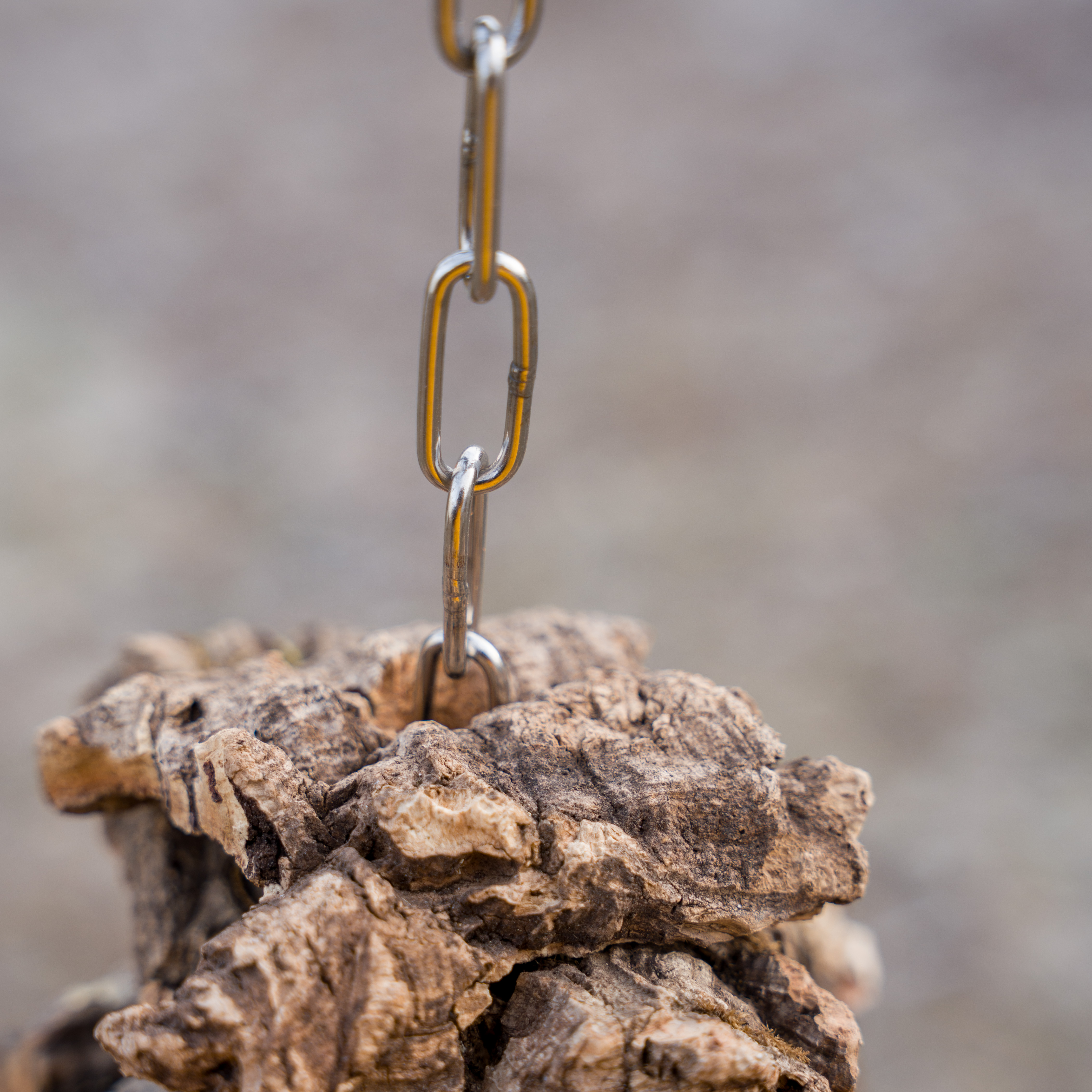 Die stabile Edelstahlkette sowie die Karabinerhaken ermöglichen eine einfache und sichere Befestigung im Käfig oder in der Voliere. Dank der Länge eignet sich das Korkspielzeug auch ideal als Kletterelement oder diagonale Sitzmöglichkeit.