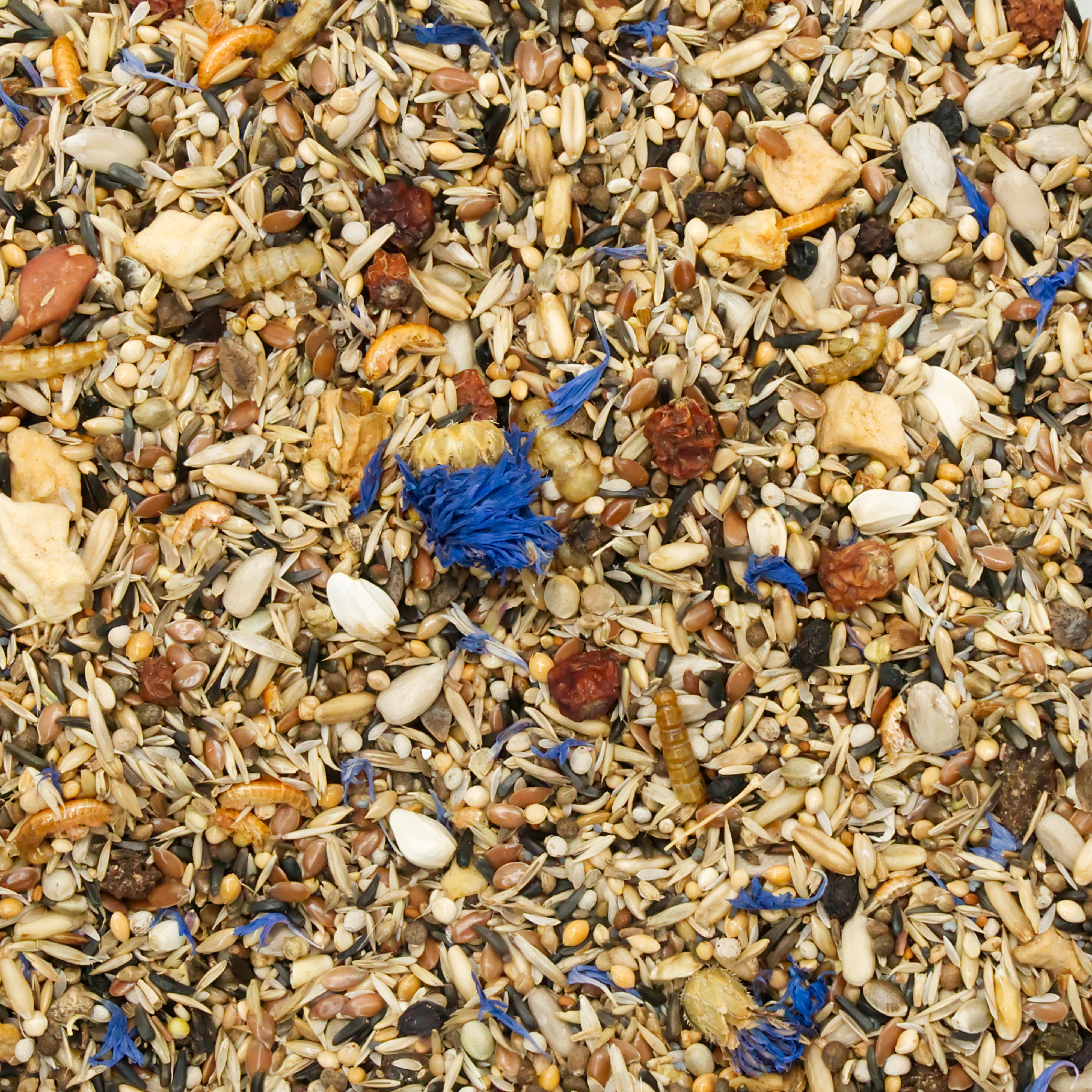 - Wildsamen Spezial und Nigersaat: Enthalten essentielle Fettsäuren und Eiweiße, die das Federkleid glänzend und gesund halten und die Reproduktionsfähigkeit unterstützen.